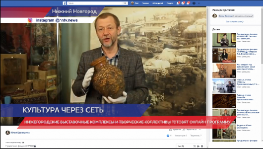 Тематические онлайн трансляции будут проходить на всех страничках социальных сетей выставочного комплекса. Так же в день победы они выложат виртуальное поздравление нижегородскому художнику, прошедшему войну - Михаилу Уткину.