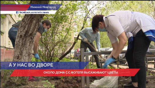 В этом доме живет Сергей Сергеевич Фогель. На его детство выпало сложнейшее испытание. Он жил в блокадном Ленинграде. Сегодня, кстати, руководит областной организацией блокадников. В палисаднике у его дома теперь появятся цветы, волонтеры постараются. Жители дома обещают ухаживать за новой клумбой.