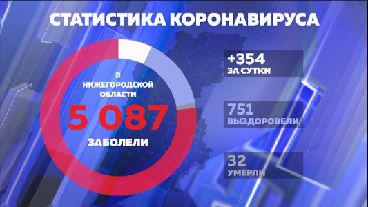 12 мая Нижегородская область перешагнула отметку в пять тысяч заболевших. За последние сутки выявлено 354 новых случая заражения. Выздоровело еще 36 человек. Итого выписан из нижегородских больниц 751 человек. К сожалению еще один пациент скончался. Печальная статистика теперь составляет 32 человека.