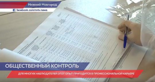 На участок заходит руководитель нижегородского филиала Фонда развития гражданского общества Евгений Семенов. Он в собственной маске и перчатках. Если у избирателя нет средств защиты, их выдают. Проголосовав, Евгений Семенов общается с наблюдателями.