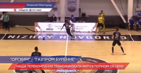 В первом тайме соперник слишком часто нарушает правила. После пятого фола за тайм назначаются десятиметровые штрафные удары. Это и происходит в матче «Оргхим» - «Газпром-Бурение». Аширов бьет сильно, но Бондарев этот удар отражает.