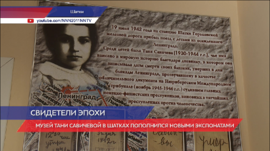 Музейная экспозиция Тани Савичевой в Шатках пополнилась новыми экспонатами09.09.2020  13:54  — ННТВ (видео)