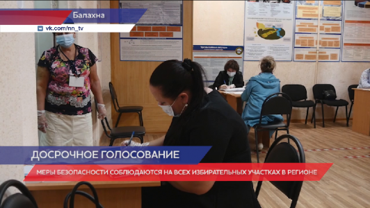 На всех избирательных участках соблюдены меры безопасности. Наличие защитных масок, перчаток, дезинфекторы. Есть и специальная разметка по соблюдению дистанции. Досрочное голосование проходит в разных районах и муниципалитетах региона. К примеру, в Балахнинском районе идёт избирательная кампания в Совет депутатов округа. Избирательные участки работают в штатном режиме.
