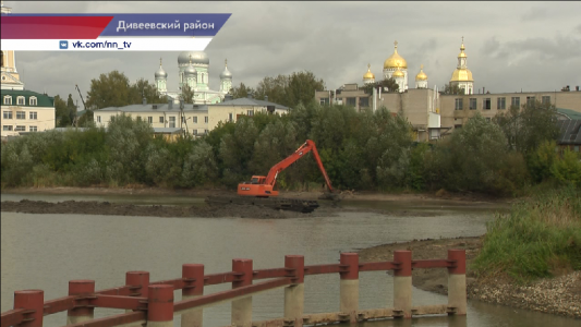 На реке Вичкинза, которая делит село Дивеево на две части, уже вовсю ведутся работы. По контракту нужно привести в порядок 8 км речного дна и вывезти более 27 тысяч кубов ила.