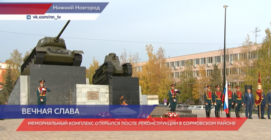 Мемориальный комплекс на площади Славы в Сормовском районе открыт после реконструкции. Главное обновление — установка памятника, на котором увековечены 35 имён героев-сормовичей Великой Отечественной войны. Полная замена освещения позволит теперь любоваться мемориалом и вечером. Объект отремонтировали в рамках национальной программы по благоустройству городских пространств. В этом году запланирована реконструкция 33 общественных мест. Полное обновление объектов планируют завершить к середине октября.