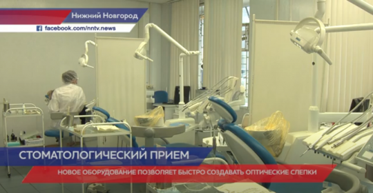 Синяя табличка на входе в советский филиал Областной стоматологической поликлиники настраивает на холодный прием. Однако за белыми дверьми дружелюбная атмосфера - регистратура нового типа, обновленные коридоры и кабинеты. Логичным дополнением к внешнему виду стало техническое оснащение. Например, недавно купленный интраоральный сканер в настоящем времени создает высокоточные оптические слепки. Пара часов и будет готова коронка из циркония или пластмассы, которую могут установить в тот же день.