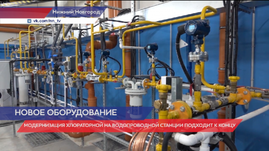 «На водопроводных станциях Нижегородского водоканала продолжается модернизация хлораторной на станции Малиновая гряда, которая обеспечивает питьевой водой Советский, Приокский и Кстовский районы. Станция закончена практически на 90%, частично