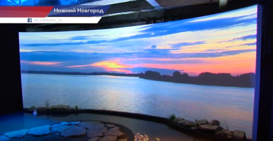 Водная гладь и виднеющиеся где-то вдали бескрайние берега. С такого образа авторы инсталляции начинают краткий экскурс в историю Нижнего Новгорода. Задача - рассказать максимально быстро, понятно, заинтересовать зрителя, чтобы он потом и изучил материал более углубленно.