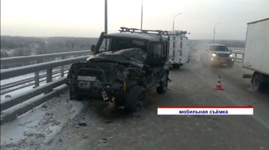 Внедорожник и междугородний автобус столкнулись на Борском мосту, на выезде из Нижнего Новгорода. Авария произошла в полдевятого утра, затруднив движение транспорта. По предварительным данным, водитель УАЗа не справился с управлением, вылетел на встречную полосу, где и врезался в Пазик. В салоне автобуса были пассажиры, из них пострадали пять человек. Врачи осмотрели их на месте и отпустили домой, в госпитализации они не нуждались. А вот водитель легкового автомобиля отправлен в Борскую ЦРБ с переломом предплечья. Пробка сохранялась в течение нескольких часов, пока сотрудники полиции зарисовывали аварию.