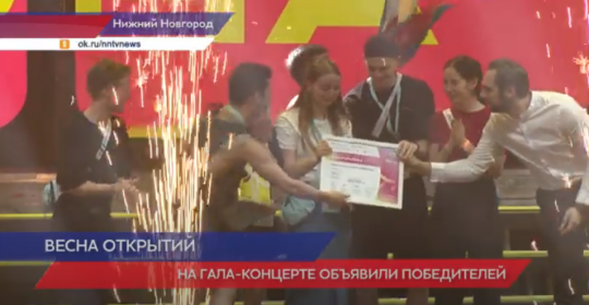 Ведущие объявляют победителей в номинациях гран-при и приглашают на сцену студентов. Заставляет всех вторить ритму фолк-фьюжн проект «Красные бусы» из Хабаровска.