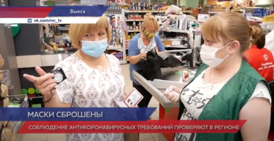 Проверка соблюдения антикоронавирусных требований продолжается в регионе. Вот кадры из Выксы. Уполномоченные совместно с полицией там проверили торговые точки. Внимание обращали на то, носят ли маски продавцы и покупатели, а также есть ли в наличии антисептики и рециркуляторы. За нарушения требований владельцам и должностным лицам в магазинах грозит штраф.