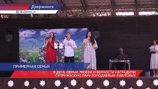 День семьи, любви и верности отметили и в Дзержинске. Там на городском фестивале «Ромашковая поляна» наградили супружескую пару Голодяевых - Павловых, проживших в браке 42 года. Они получили известность среди сограждан крепостью семейных устоев, основанных на взаимной любви и верности и были награждены медалью «За любовь и верность». Ежегодно в рамках празднования Дня семьи, любви и верности чествуют супружеские пары Нижегородской области, прожившие в браке более 25 лет. В 2021 году памятную медаль получили 70 заслуженных семей. К слову, день семьи, любви и верности отмечается в России с 2009 года. За этот период 640 семей Нижегородской области награждены общественными медалями «За любовь и верность». Супруги Голодяевы- Павловы воспитали трех дочерей, имеют шесть внуков. Дочери занимают социальную активную позицию в общественной жизни, имеют достижения и поощрения в профессиональной деятельности, успешно воспитывают своих детей. Супруги «Ветераны труда Нижегородской области», имеют многочисленные поощрения и награды с мест работы.