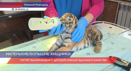 " 18 июля у нас появились тигрятки. В очередной раз мамочка от них отказалась. Дали ей все условия для выкармливания, у неё был выход и на улицу гулять, но тем не менее, она у нас отказалась от тигрят…Организованы дежурства, дежурят сотрудники зоопарка, каждые два часа. Чуть позже будем увеличивать, промежутки между кормлениями. Уже тигрятки достаточный объём пищи съедают, самостоятельно в туалет они не ходят, нужно им помогать. Поэтому, дежурят."