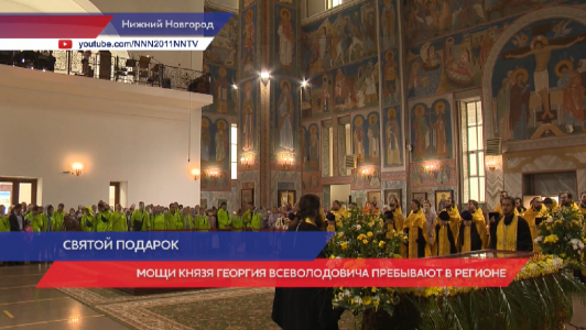 Мощи основателя нашего города Георгия Всеволодовича продолжают пребывать в регионе. В год 800-летия Нижнего Новгорода эта святыня приносится из Успенского собора города Владимира. В четверг, 29 августа святыня прибыла в храм на улице Дьяконова в Автозаводском районе, состоялось перенесение мощей в новый храм во имя святого князя Георгия Всеволодовича на Южном Бульваре, напротив дома 18. С сегодняшнего дня и до 8 августа поклониться мощам можно в главном храме региона - соборе во имя святого благоверного князя Александра Невского. Все торжественные мероприятия можно увидеть в прямом эфире нашей телекомпании. Накануне в Дивеевском монастыре завершилось празднование 30-летия второго обретения мощей преподобного Серафима Саровского.