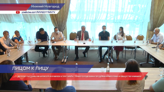 Представители регионального бизнес-сообщества и члены общественных организаций обсуждают с депутатом ГосДумы Алексеем Журавлевым вопросы ЖКХ, Экологии, поддержки малого и среднего бизнеса, а также развития патриотических проектов. О возможности поддержать дзержинский молодежный поисковый отряд «Торнадо» спрашивает первокурсница Варвара Петрова.