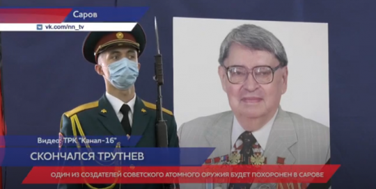 Российского физика Юрия Трутнева похоронят в Сарове. Выдающийся ученый скончался 6 августа на 94 году жизни. В 1951 году, после окончания физического факультета Ленинградского государственного университета был направлен на работу во Всесоюзный научно-исследовательский институт экспериментальной физики и начал работу в Арзамас-16 в Конструкторском бюро № 11. Юрий Трутнев был одним из основных участников работ по созданию термоядерного заряда РДС-37. За участие в этом проекте награждён в 1956 году орденом Ленина. Заложенный в разработку заряда принцип радиационной имплозии лёг в основу нового принципа создания термоядерного оружия, а сам заряд стал прототипом многих советских ядерных зарядов, разработанных в дальнейшем. До последнего времени он работал первым заместителем научного руководителя Российского федерального ядерного центра – Всероссийского научно-исследовательского института экспериментальной физики в Сарове. Он стал первым сотрудником ядерного оружейного комплекса России - полным кавалером ордена «За заслуги перед Отечеством». На траурной церемонии присутствовал Первый заместитель Руководителя Администрации президента России Сергей Кириенко и Губернатор Нижегородской области Глеб Никитин.
