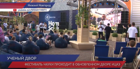 Обновлённый двор Информационного центра по атомной энергии на пересечении улиц Семашко и Большой Печерской не узнать. За 1,5 месяца это место превратилось в современную коммуникативную площадку, где проводят фестиваль науки и технологий «Homo Science», организованного Росатомом и приуроченный к 800-летию Нижнего Новгорода.