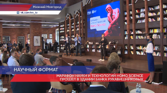 Первый марафон Науки и Технологий Homo Science проходит в отреставрированном здании банка Рукавишниковых, где находилась когда-то фабрика Маяк. В обновленной зале рассказывают о прорывных достижениях науки и высоких технологиях. Собирает гостей сеть Информационных центров по атомной энергии, при поддержке Госкорпорации «Росатом». Партнер проекта - Российское общество «Знание». Звучит вопрос - как вернуть интерес молодежи к фундаментальному образованию?