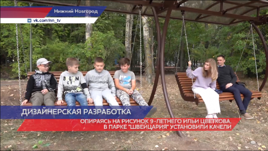 Четверо друзей удобно располагаются на качелях, названных по фамилии одного из них Цветковскими. Илья, 9-летний ученик 17-ой гимназии, придумал дизайн и месторасположение этого объекта. Свой рисунок школьник отправил на конкурс «Мой парк - моя Швейцария». И именно его идею воплотили в жизнь.
