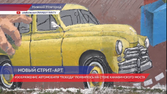 Изображение автомобиля ГАЗ М20, или как ее принято называть «Победа» появилось на стене Канавинского моста. Его создал известный нижегородский уличный художник Антон Табатчиков, постоянный участник фестиваля стрит-арта «Место». Его работы знают многие горожане: это диптих о Великой Отечественной войне «Послание через время» на Невзоровых, дятел-колдун на Гребном канале. Художнику помогали городские волонтеры.