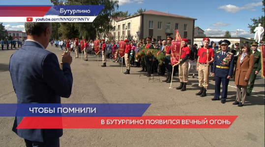 Торжественный митинг начинается ровно в полдень. В Бутурлино появляется один из главных символов Победы - Вечный огонь.