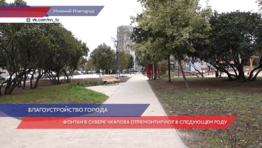 Еще одно пространство города - сквер рядом с Домом Культуры имени Ленина отремонтировали после обращения местных жителей к губернатору. Высадили зелень, выложили дорожки брусчаткой, поставили качели. Новое общественное пространство продолжается до сквера Чкалова. 100-летний фонтан будут капитально ремонтировать в следующем году. Это объект культурного наследия, и к его реконструкции нужно подходить по особому.
