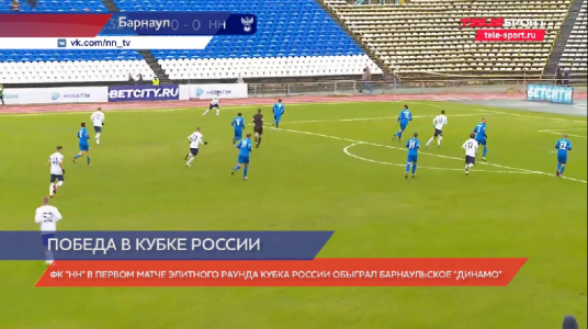 Футбольный клуб «Нижний Новгород» с победы начал выступление в элитном раунде Кубка России. В Барнаул на матч с местным «Динамо» команда поехала в смешанном с молодежкой составе, многие игроки остались в Нижнем готовиться к матчу Премьер-Лиги против ЦСКА. С первых минут у ворот наших соперников создавались опасные моменты, однако вратарь барнаульцев Зубчихин справлялся с угрозами. Но уже на седьмой минуте Ткачук сделал передачу с левого фланга, и Берковский, обработав мяч, пробил в ближний верхний угол. Очень красивый гол от нижегородцев. Этот мяч оказался единственным за всю встречу, несмотря на обилие созданных «Нижним» моментов. В самой концовке матча «Динамо» попыталось устроить навал на наши ворота, но, к счастью, их попытки успехом не увенчались. 1:0, первые три очка в элитном раунде. Следующим соперником станет воронежский «Факел», игра пройдет на выезде 27 или 28 октября.