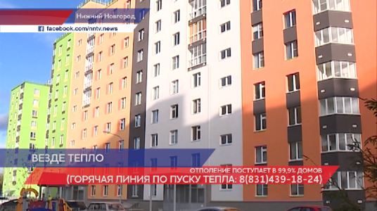 Отопление в Нижнем Новгороде поступает в 99,9% домов. По информации департамента жилья и инженерной инфраструктуры администрации города, по состоянию на 27 сентября тепло подается в 7 978 многоквартирных домов. По остальным объектам, куда тепло до сих пор не поступает, известно, что неудовлетворительная работа систем отопления связана с эксплуатацией погодозависимых котельных, температурными колебаниями или проблемами в системе отопления самих домов.