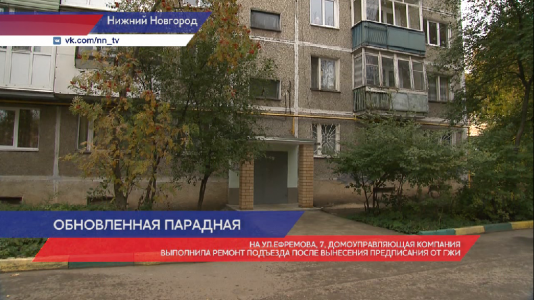 ГЖИ проверила ремонтные работы подъезда в доме 7 на улице Ефремова в Нижнем Новгороде04.10.202113:18