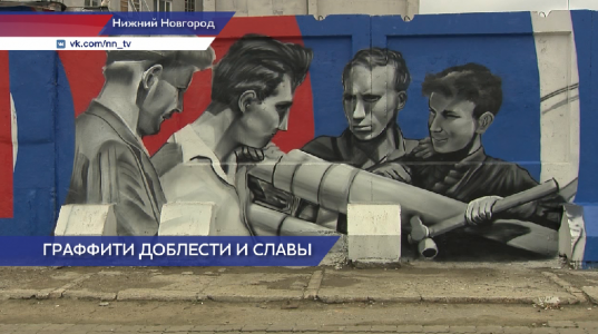 Когда-то невзрачные стены на площади Революции стали говорящими. Теперь каждому прохожему они сообщают: Нижний Новгород - город трудовой доблести. Новое граффити, посвященное гордому городскому званию, появилось в рамках проекта - нижегородский марафон доблести и славы «Победный сентябрь».