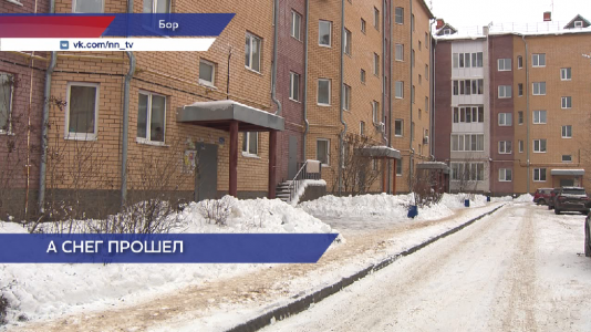 Татьяна Слободянюк- начальник Борского отдела Госжилинспекции: «Ну, вот в данном случае мы наблюдаем, что входные группы очищены от снега, но тротуары очищены не совсем качественно, то есть домоуправляющая компания через 3 часа после снегопада не провела своевременную уборку из-за температурных качелей, всё слежалось и сейчас это убрать всё гораздо сложнее».