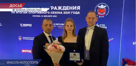 В столице нашу землячку Анастасию Белякову с "золотым" окончанием спортивного сезона поздравил президент Федерации мотоциклетного спорта России Александр Джеус. На красочном мероприятии - фраки и вечерние платья вместо мотокомбинезонов, потому что в этот день ведущие российские пилоты встретились не на треке, а в красивом фуршетном зале. В церемонию награждения участвовало более ста спортсменов от Владивостока до Санкт-Петербурга. Впечатляет не только география участников, но и разнообразие номинаций: гонки на льду и гаревой дорожке, мотокросс, мотобол и эндуро на мотоциклах, и, конечно, шоссейно-кольцевые гонки, где признанный лидер - наша Настя Белякова.