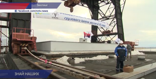 Металлический соперник нижегородских атлетов, козловой кран - установлен на крыше Нижегородской ГЭС. Уже 67 лет он помогает обслуживать гидроагрегаты, но такие манипуляции с ним проводят впервые. 11 человек с каждой стороны от крана накидывают на плечи тросы. Еще 18 человек - натягивают канаты - для удобства. Пара секунд до старта - спортсмены идут на рекорд.