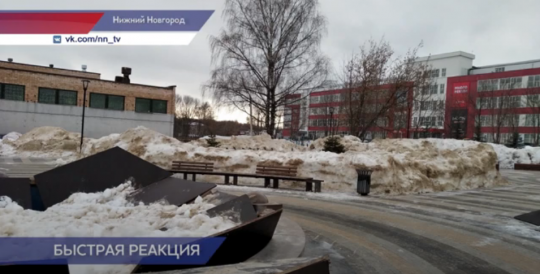 Конструкция, закрывающая фонтан у нижегородской гимназии, развалилась25.02.2022  16:13  — ННТВ (видео)