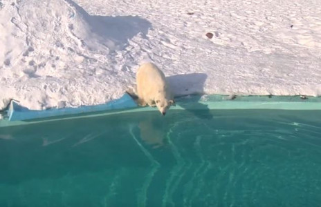 «В день она съедает 6 кг мясного жира и около 5 кг рыбы. Вода в бассейне в зимний период немножко подогревается, чтобы не образовывалась ледовая корка и медведь всегда имел возможность купаться».