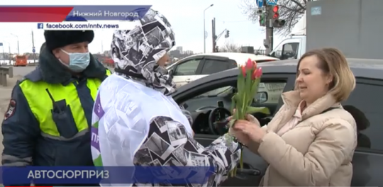 В Нижнем Новгороде сотрудники ГИБДД дарят женщинам цветы05.03.2022  17:47  — ННТВ (видео)