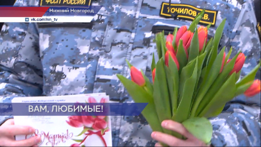 Заручившись тюльпанами и открытками нижегородские приставы в Кремле поздравляют женщин с