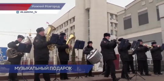 Утро предпраздничного рабочего дня для прекрасной половины Нижнего Новгорода обернулось приятным сюрпризом. Музыканты оркестра Главного управления МВД России по Нижегородской области по уже сложившейся доброй традиции поздравили нижегородок с наступающим Международным женским днём - музыкальным подарком, возле станции метро «Горьковская». Полицейские в этот момент поздравляли женщин, вручая им цветы и теплые пожелания. Насладиться известными и любимыми сердцу мелодиями смогли и жители, и гости Нижнего Новгорода. Как считают сам сотрудники областного полицейского ведомства, «музыкальные композиции зарядили прохожих хорошим настроением, пробудили ностальгические воспоминания и сделали рабочий день приятнее».
