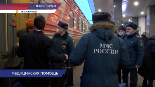 во время встречи в Нижнем Новгороде третьего поезда из Донбасса, 10 человек обратились за медицинской помощью. Также он сообщает, что в ближайшее время медики обследуют всех прибывших и составят индивидуальные карты здоровья. О состоянии здоровья госпитализированных не сообщается.