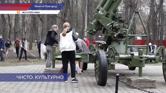 Мастер-классы и развлекательные мероприятия провели в рамках субботника, который традиционно проводят накануне Дня Победы. Чисто и культурно проводят субботники в Нижнем Новгороде. Активисты Территориальных общественных самоуправлений, «Волонтеры Победы», школьники и просто неравнодушные граждане наводят порядок возле памятников героям Великой Отечественной. На этом месте располагались боевые позиции зенитного артиллерийского полка, защищающие небо города Горького. Во время войны здесь грохотали залпы.