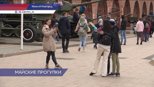 Дарья Аксенова – корреспондент: «Майские праздники в самом разгаре. И пока одни нижегородцы отдыхают на даче, другие отправляются на прогулку. Вот и мы решили насладиться красотами нашего города и начать с его сердца - Нижегородского кремля».