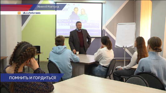 Николай Лешков - руководитель регионального отделения Российского военно-исторического общества в Нижегородской области: «У нас идут весь год такие тематические встречи. Они у нас приурочиваются к тому или иному событию, той или иной дате. Потому что наша история, наша российская история она уникальна тем, что у нас есть чем гордится, есть много дат. Как военных, так и просто исторических. Один из самых главных моментов, которые мы стараемся донести - наша Победа ковалась в единстве армии и тыла».
