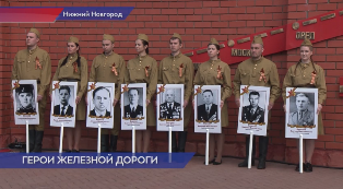 О подвиге горьковчан, в годы Войны трудившихся на ГЖД, вспоминают на торжественном митинге. В честь героев-железнодорожников участники мероприятия возлагают цветы к мемориалу «Бронепоезд Козьма Минин». Рядом с ним останавливается «Поезд Победы» - это первая в мире иммерсивная инсталляция "на рельсах".