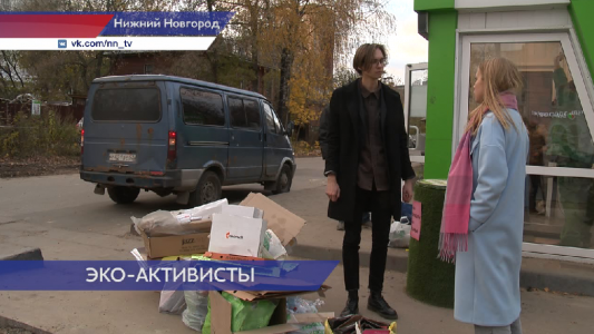 У двери - длинная очередь из нижегородцев, радеющих за экологию. Мы приезжаем почти к закрытию, но успеваем сдать наш габаритный телевизионный расходный материал.