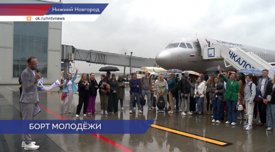 Самолёт «Полёт знаний» прибыл из Москвы в Нижний Новгород. На борту - гости со всей страны: молодые педагоги, наставники, учителя. Все они прибыли для участия в «Дне молодежи». Воздушное судно встретили водной аркой, которую создают только по важным случаям. Прямо у трапа гостей приветствовали волонтёры и встречающие.