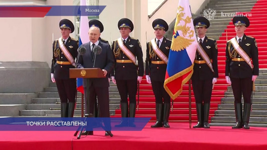 Владимир Путин обратился к подразделениям силовых ведомств, обеспечивавшим порядок во время мятежа, с крыльца Грановитой палаты в Кремле.
