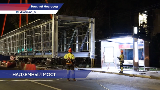 Основные работы по монтажу пешеходного моста на Сормовском шоссе были проведены ночью, когда движение автотранспорта минимальное. Установка пролетного строения заняла всего два часа.