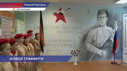 «Волонтеры Победы» не устают создавать произведения искусства в образовательных учреждениях. Новое граффити, посвященное участнику Великой Отечественной Войны Юрию Смирнову, появилось в школе №169».