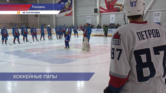 Ледовая площадка ФОКа «Александр Невский» принимает в своих стенах встречу двух необычных команд. Под громкие овации зрителей в центре внимания актёрский состав вскоре выходящего в прокат фильма «Хоккейные папы». Противостоят звёздам отечественной кино эстрады команда любителей хоккея Нижегородского региона – «Отцы и дети».
