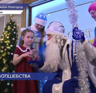 Веселые игры со сказочными героями, хоровод и, конечно, подарки. Заветную коробку со сладостями от Деда Мороза получает Максим Мудров.